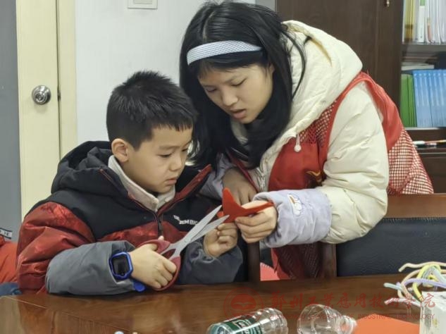彭巾芯在实践期间,不仅协助孩子们完成作业、耐心答疑,还通过开展窗花剪纸、手工灯笼制作及象形文字趣味课堂等活动,引导孩子们在动手实践中感受传统民俗与汉字文化的独特魅力,于互动协作中传承中华优秀传统文化。