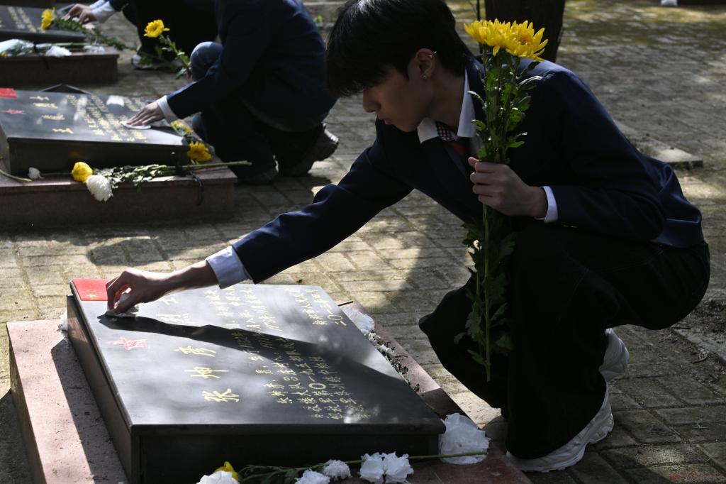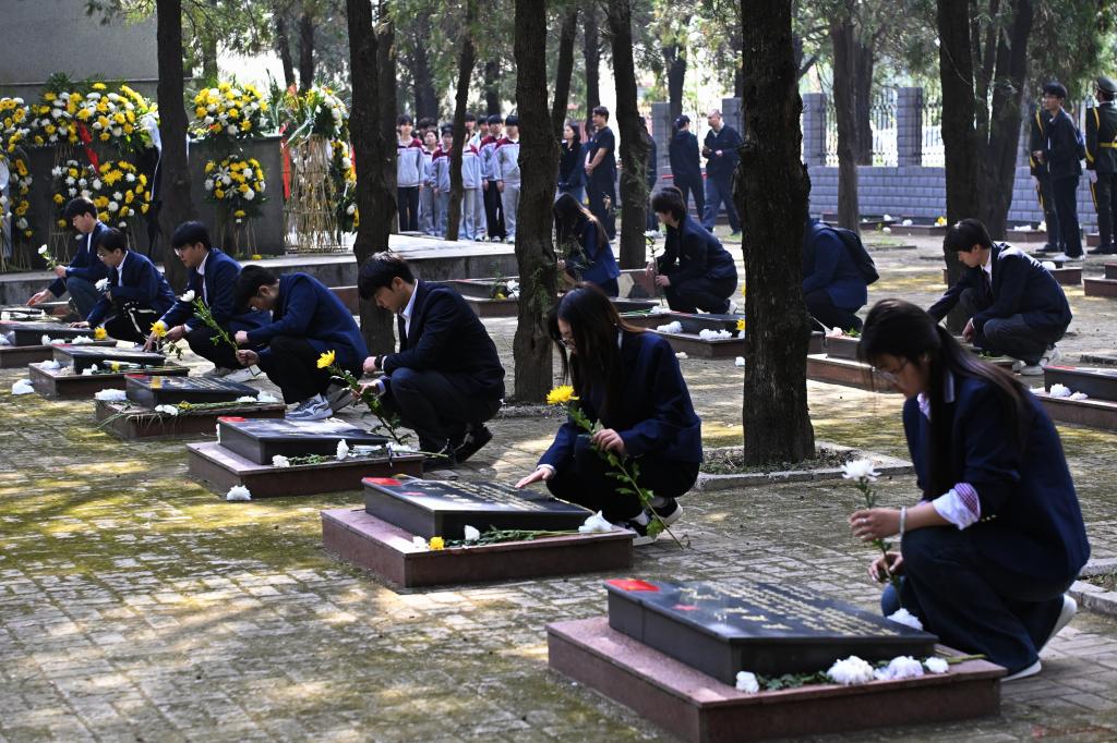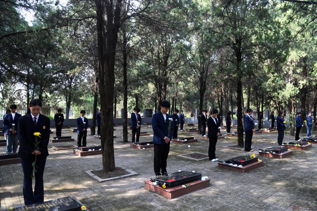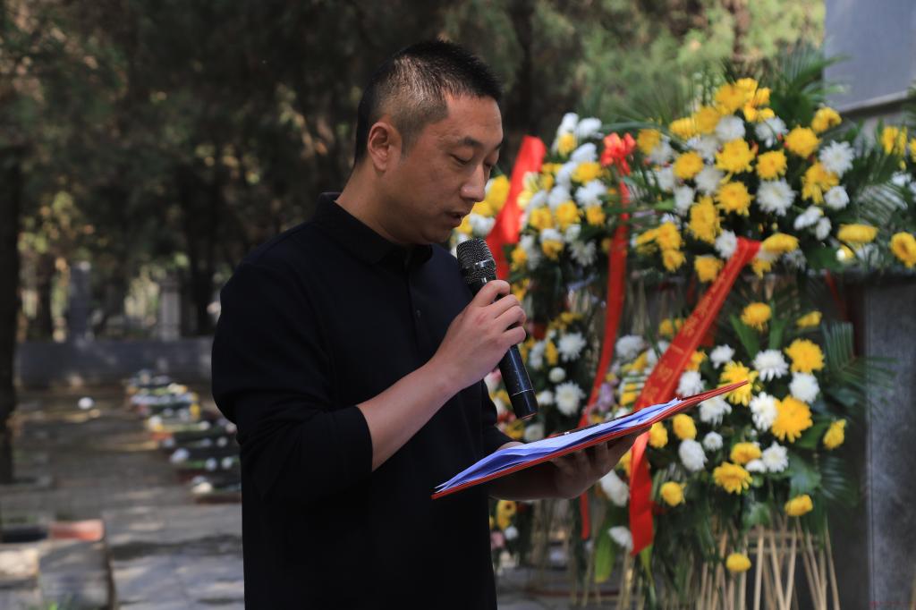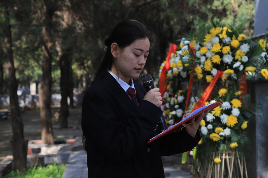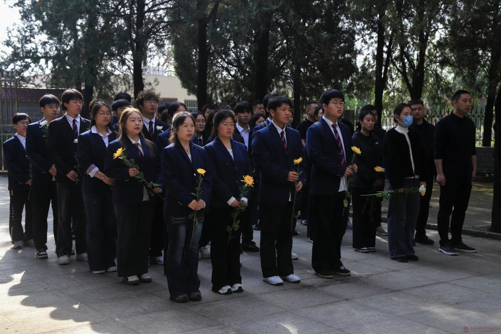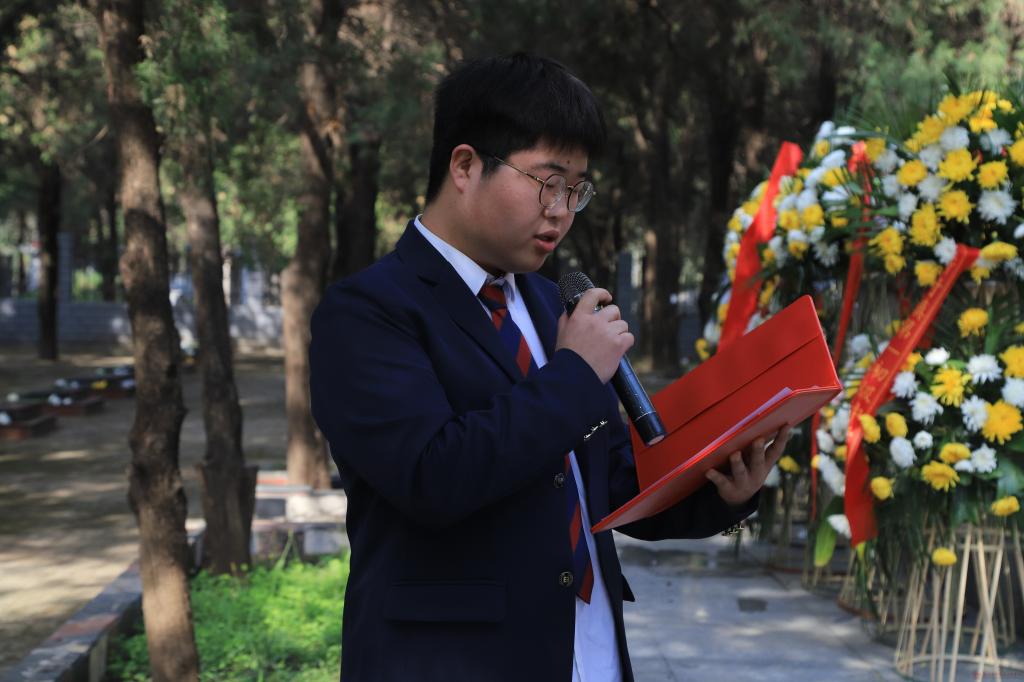 校团委副书记发表讲话,他向全体青年学子深情讲述了革命先烈们不畏艰险、奋勇拼搏的英雄壮举,英烈精神是中华民族的宝贵财富,更是激励青年成长成才的精神旗帜。他强调此次祭扫是一堂行走的大思政课,希望全体团员青年传承红色基因、厚植家国情怀,以英烈为榜样,在学业上刻苦钻研、在集体中乐于奉献,在困难面前迎难而上,在时代召唤时挺身而出,将崇敬之情转化为爱国报国的实际行动,用青春力量告慰先烈、勇担时代使命。