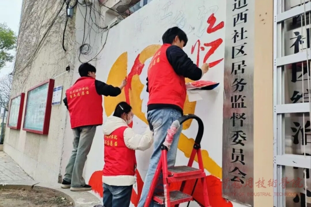 基地共建后,学院依托平台开展“艺心向党”主题墙绘实践活动。志愿者走进社区,以墙为卷、以笔为媒,分工协作完成墙体创作,主题鲜明、色彩绚丽的墙绘让老旧墙面焕新,更让红色文化浸润人心。志愿者在创作中重温红色历史、锤炼专业技能,深切体会到艺术服务社区、传承精神的价值。