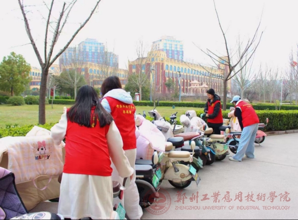 志愿者们身着红色志愿马甲,分批次开展专项服务。在校园主干道旁,大家分工协作整理电动车停放秩序,弯腰扶正歪斜车辆,将乱停车辆逐一移至指定区域,还耐心劝导过往同学按线停车、文明出行,让原本杂乱的停车区变得井然有序,显著提升道路通行效率。