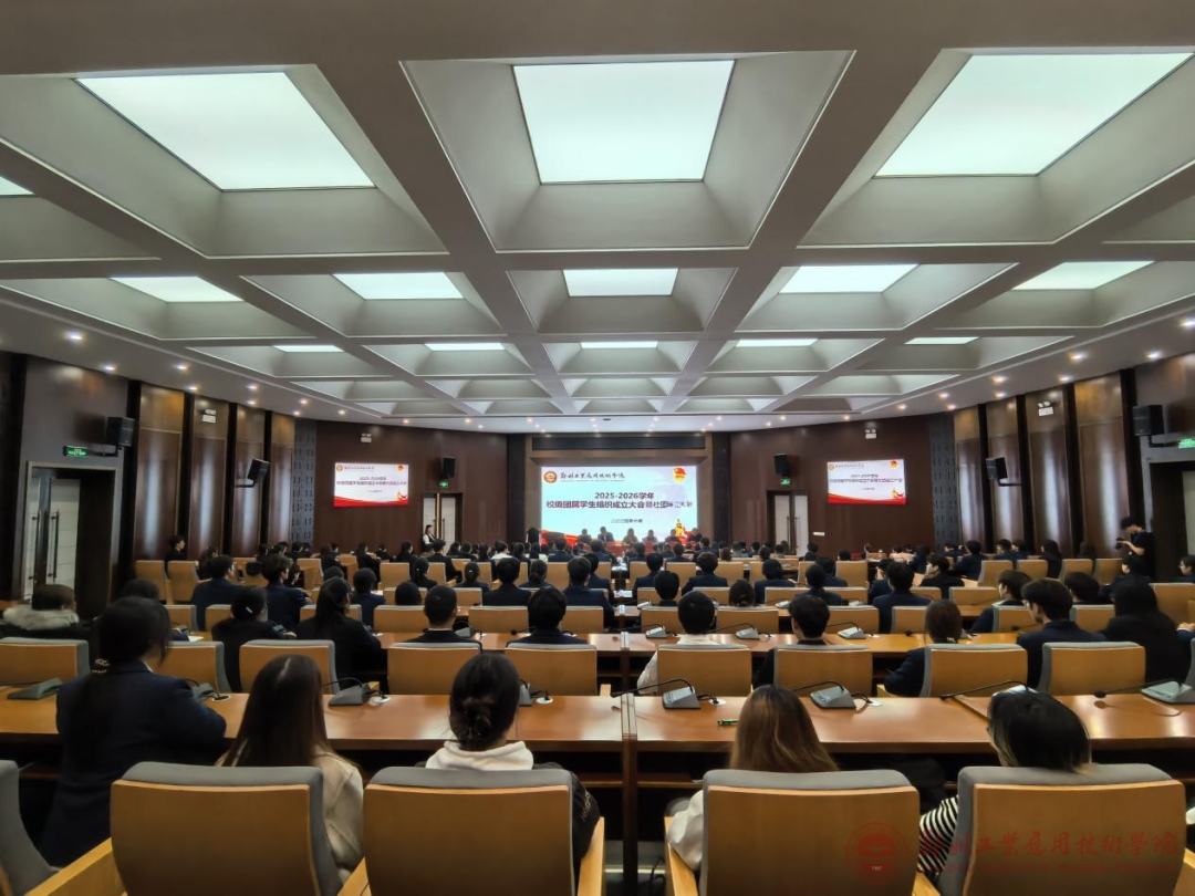 为深入学习贯彻习近平新时代中国特色社会主义思想和党的二十大精神,全面贯彻习近平总书记关于青年工作的重要思想,切实提高学生组织的思想引领力、组织动员力、文化吸引力、基层战斗力、团队凝聚力,10月15日,我校2025-2026学年校级团属学生组织成立暨社团成立大会在建工楼天健厅召开。学校党委副书记、副校长王美英出席会议,党委组织部、党委宣传部、团委等相关部门负责人,各院(部)党委书记、学管副院长,各院部团委书记、社团指导老师、学生干部代表参加本次会议,会议由学生工作部部长陈晴晴主持。