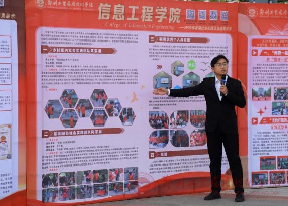 暑期社会实践风采展示活动在双创园国际学术交流中心楼前举行,12个学院的团委书记以“青春为中国式现代化挺膺担当”为主题,通过成果展板、现场宣讲等方式,系统呈现各学院实践团队在理论宣讲、文化传承、乡村振兴、科技创新四大领域的工作成效。全校各实践团队深入革命老区、红色教育基地,开展“两弹一星”精神宣讲、讲述老一辈科学家的奋斗故事,激发青年爱国情怀;聚焦非物质文化遗产保护与传承,学习传统技艺,让非物质文化遗产焕发出新的活力;扎根乡村,开展教育帮扶、产业调研、生态保护等活动;开设“七彩课堂”,为留守儿童提供学业辅导和兴趣培养;调研当地特色农业产业,提出发展建议,助力乡村振兴;结合专业优势,开展科技调研、科普宣传等活动,了解前沿技术应用,提升公众科学素养,全面展示师生在暑期社会实践中取得的丰硕成果。