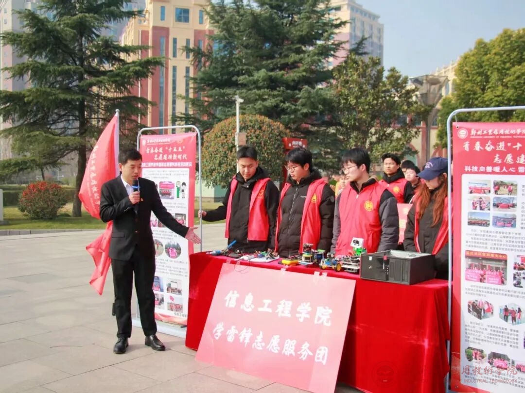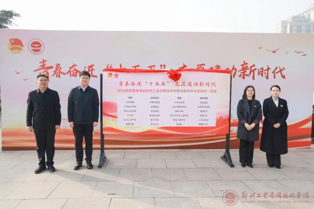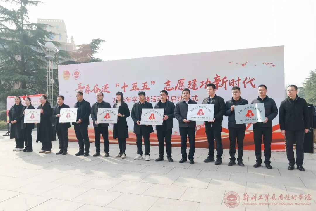 为大力弘扬雷锋精神,推动学雷锋志愿服务常态化、制度化,3月10日,“青春奋进‘十五五’志愿建功新时代”学雷锋活动月启动仪式在我校图书馆前举行。共青团新郑市委书记王启名,新烟街道党工委副书记、办事处主任李建培,新烟街道党工委委员、人大工委主任高留伟,新郑市青少年活动中心主任李娜,学校党委副书记、副校长王美英、学生工作部部长陈晴晴以及12个结对社区党支部书记等有关负责人,师生代表及共建社区、青年志愿者代表等参加活动。启动仪式由校团委书记亢依林主持。