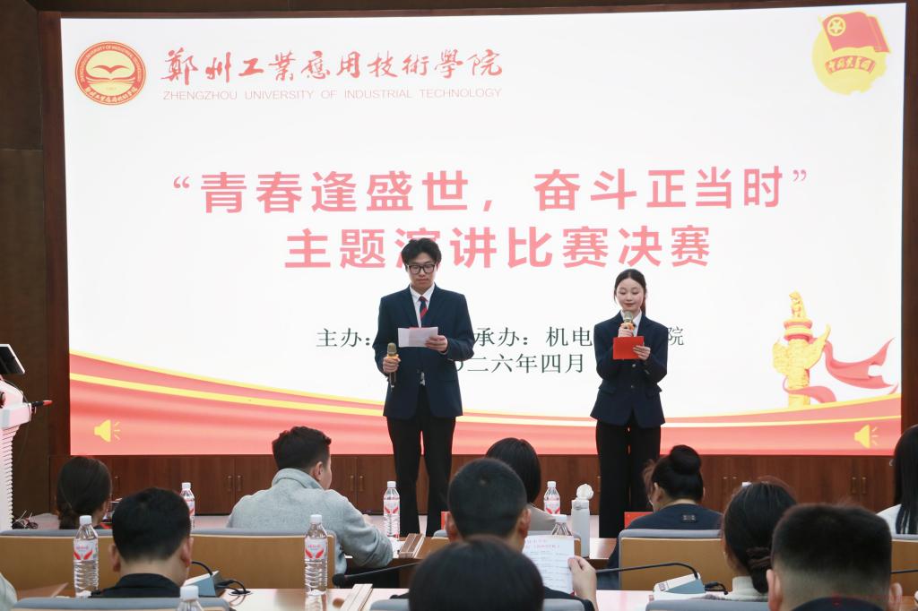 为深入学习贯彻习近平新时代中国特色社会主义思想,全面落实习近平总书记关于青年工作的重要思想,引导广大青年学生坚定理想信念、勇担时代使命,4月1日,由校团委主办 ,机电工程学院承办的“青春逢盛世,奋斗正当时” 主题演讲比赛在建工楼天健厅隆重举行。